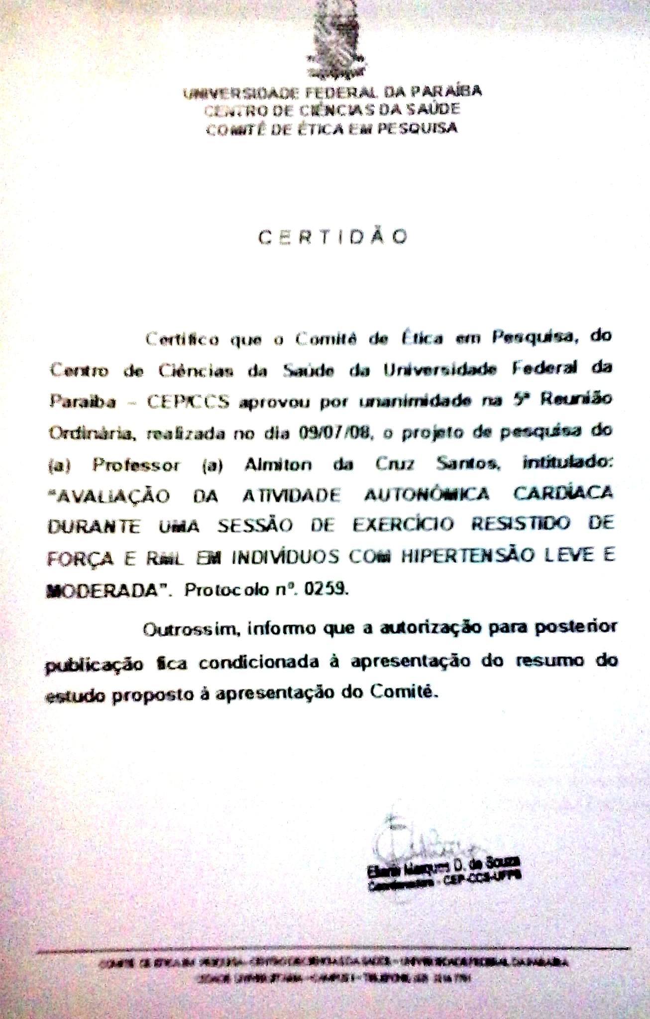 Amilton da Cruz Santos, Universidade Federal da Paraíba