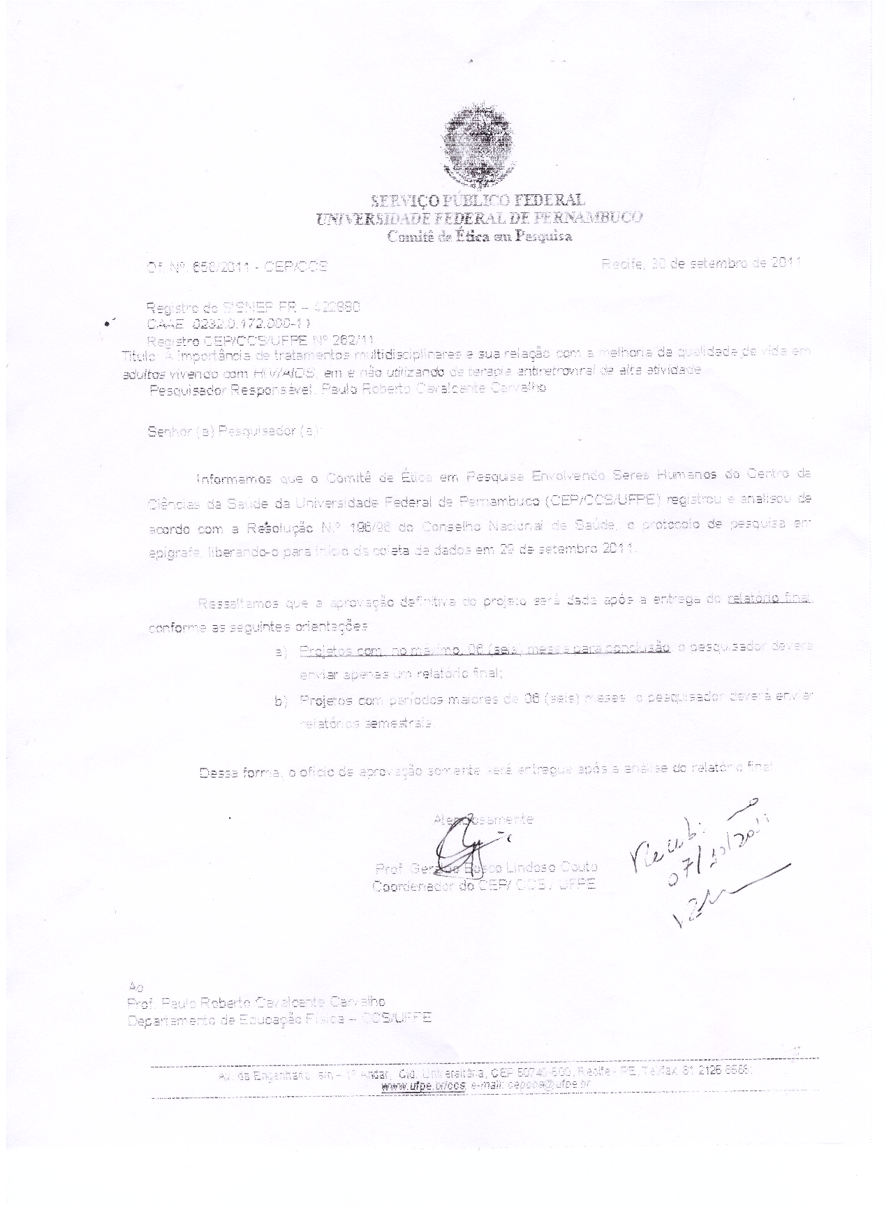 Objetivo: Verificar o efeito do treinamento resistido progressivo no perfil antropométrico de pessoas vivendo com HIV/AIDS, submetidos à terapia anti-retroviral altamente ativa. Metodologia: A amostra foi composta por 30 sujeitos, no qual apenas 18 completaram o protocolo de treinamento. Foi avaliado o índice de massa corporal, a relação cintura/quadril, índice de conicidade, percentual de gordura, massa gorda e magra. O programa de treinamento resistido progressivo foi constituído por três etapas: 1) envolveu seis sessões adaptativas; 2) englobou 12 sessões com três séries de 12 repetições e intervalo de descanso de 60 segundos(s), com intensidade de 50% da carga máxima; e 3) constituída por 42 sessões com três séries de oito repetições e intervalo de descanso de 90 segundos(s), com intensidade de 70-80% da carga máxima. Resultados: Foi verificado redução nas dobras cutâneas subescapular (p=0,047), supra-ilíaca (p=0,029) e triciptal (p=0,018) e na circunferência da cintura (p=0,003); na relação cintura/quadril (p=0,050); percentual de gordura (p=0,040) e aumento na circunferência do braço (p=0,010) e da perna (p=0,005) e na massa magra (p=0,004). Conclusões: O presente estudo sugere que a utilização do treinamento resistido progressivo apresentou melhorias nos parâmetros antropométricos associados ao uso da terapia anti-retroviral altamente ativa das pessoas vivendo com HIV/AIDS.Downloads