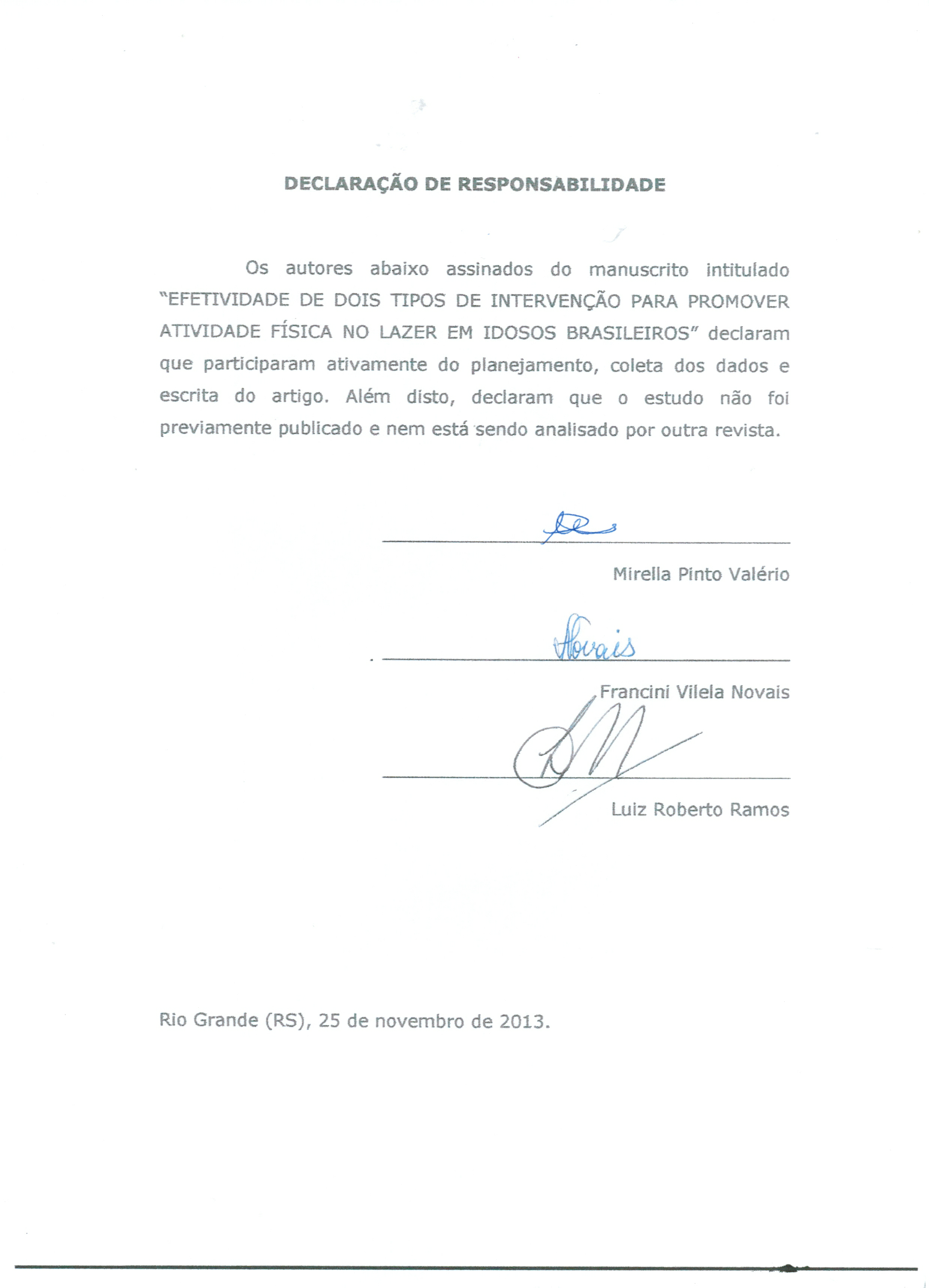 - Declaração de responsabilidade