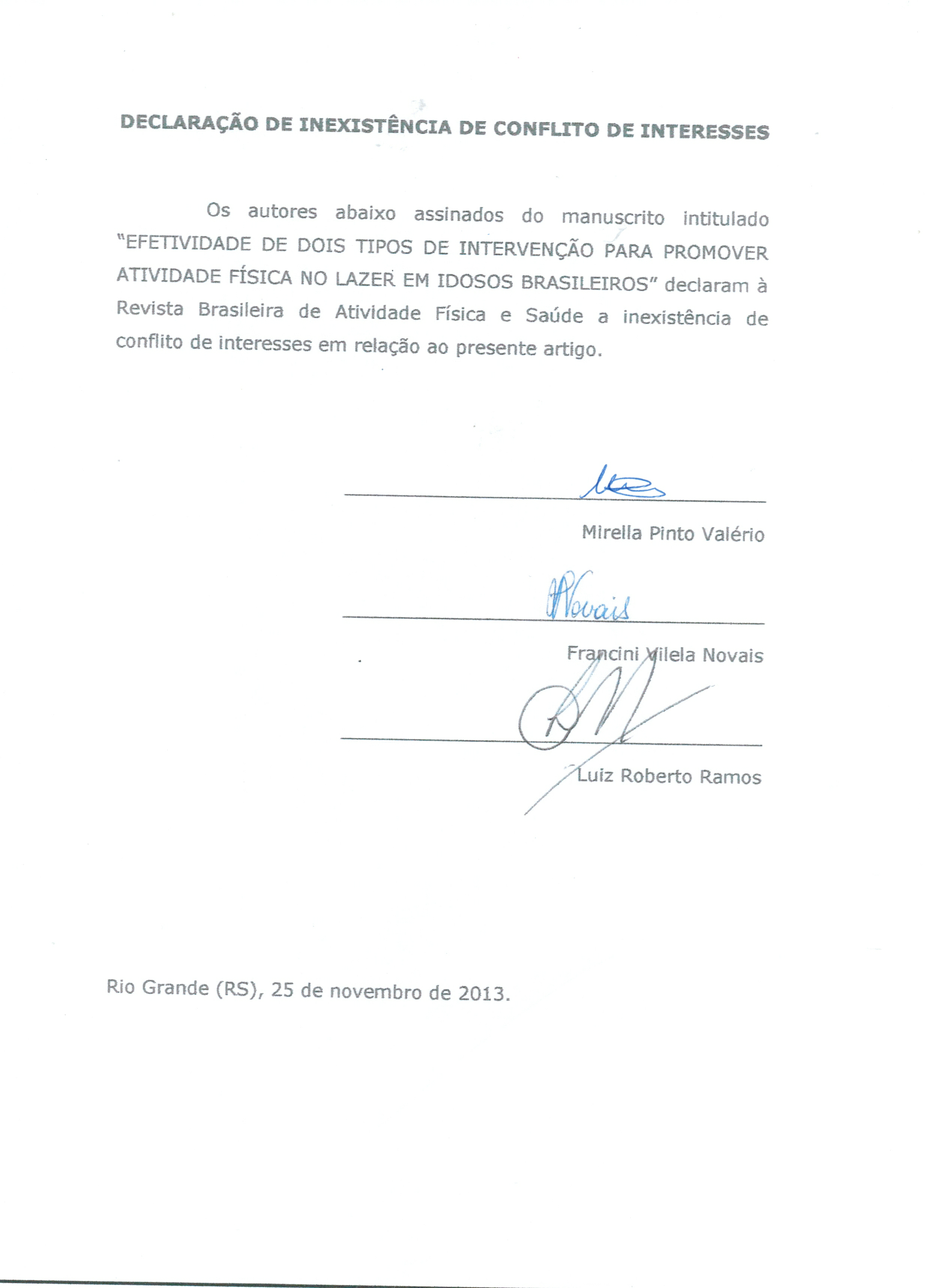 - Declaração de inexistência de conflito de interesse
