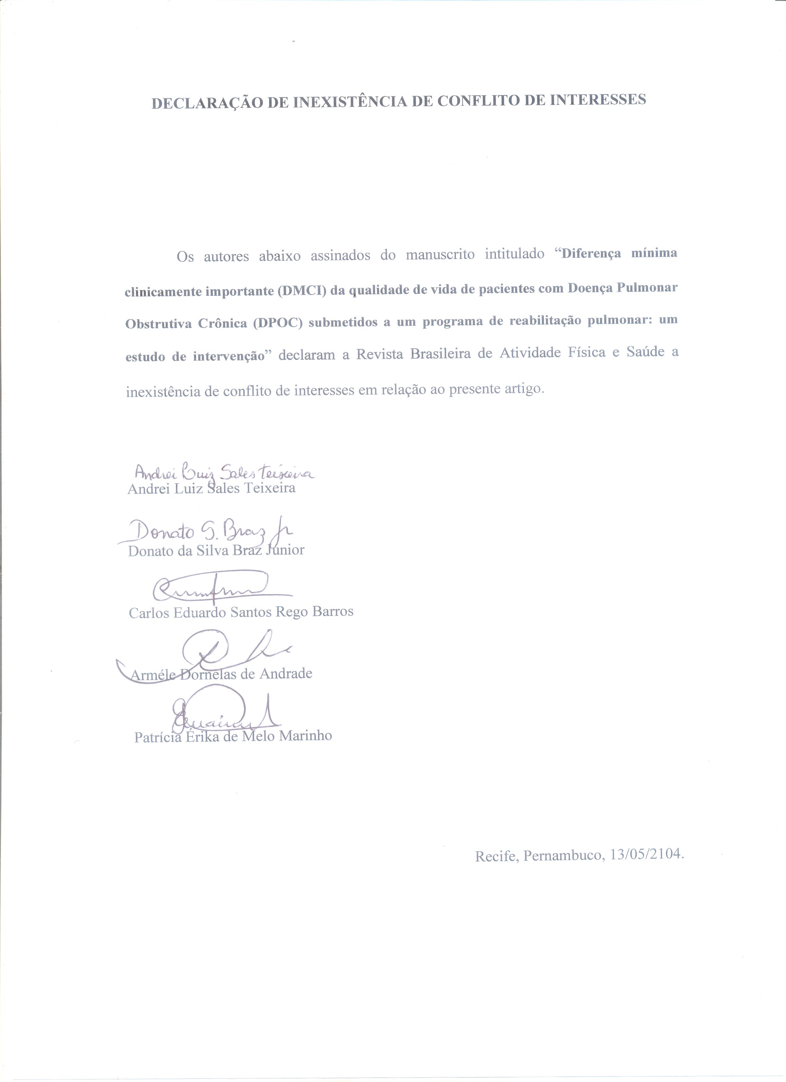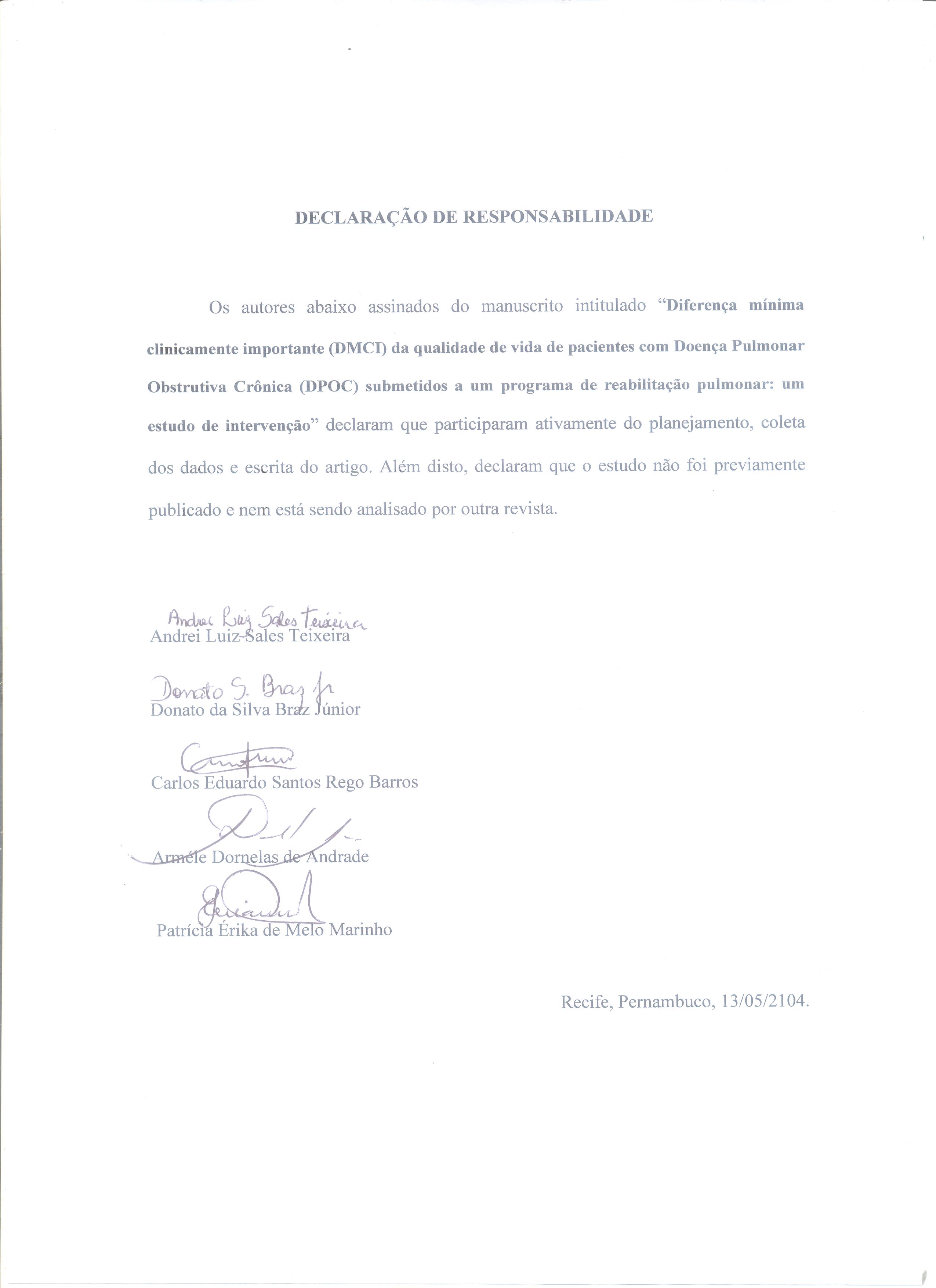 - Diferença mínima clinicamente importante (DMCI) da qualidade de vida de pacientes com Doença Pulmonar Obstrutiva Crônica (DPOC) submetidos a um programa de reabilitação pulmonar: um estudo de intervenção