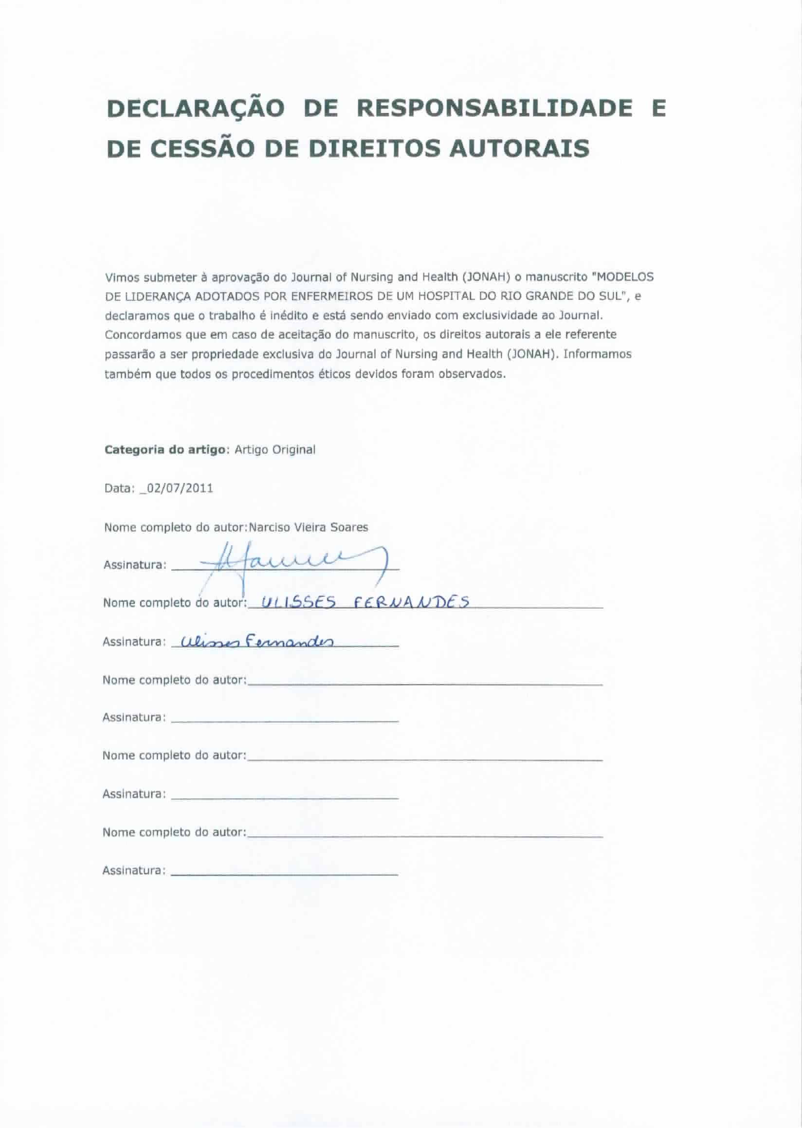 - Declaração de Responsabilidade e de Cessão de Direitos Autorais