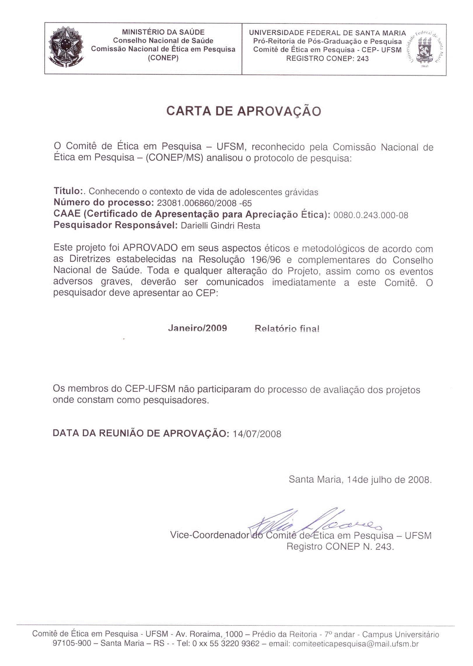- Carta de Aprovação CEP