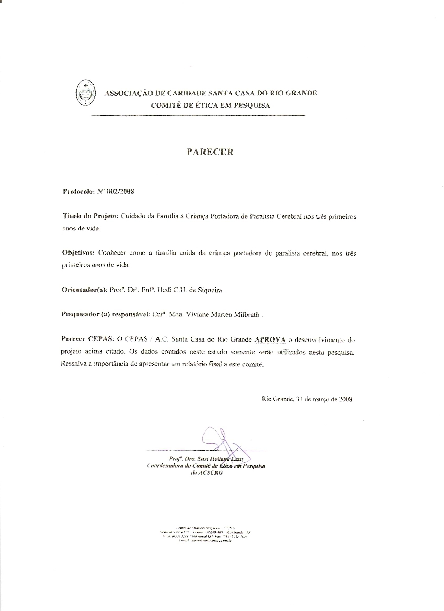- Autorização do Comitê de Ética em Pesquisa